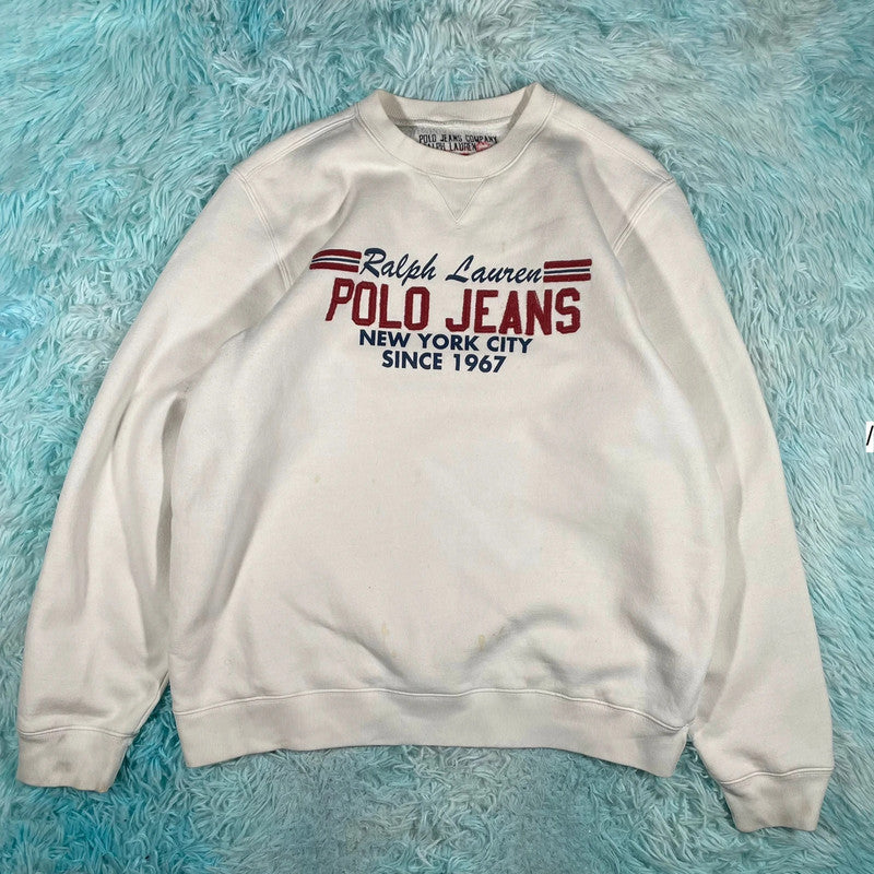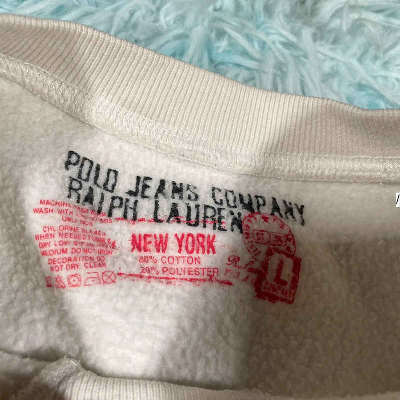 White Ralph Lauren Polo Jeans Sweatshirt Spellout - Large, brand: Ralph Lauren, condition: Good, size: L