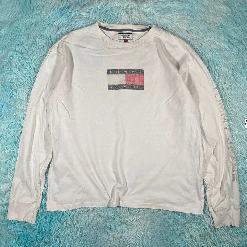 White Tommy Jeans Long Sleeve T Shirt - Large, brand: Tommy Jeans, condition: Good, size: L